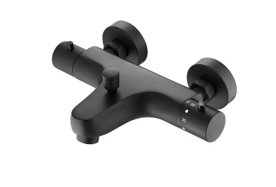 मैट ब्लैक कंटेम्परेरी थर्मोस्टैटिक नल डुअल हैंडल बाथ और शावर नल